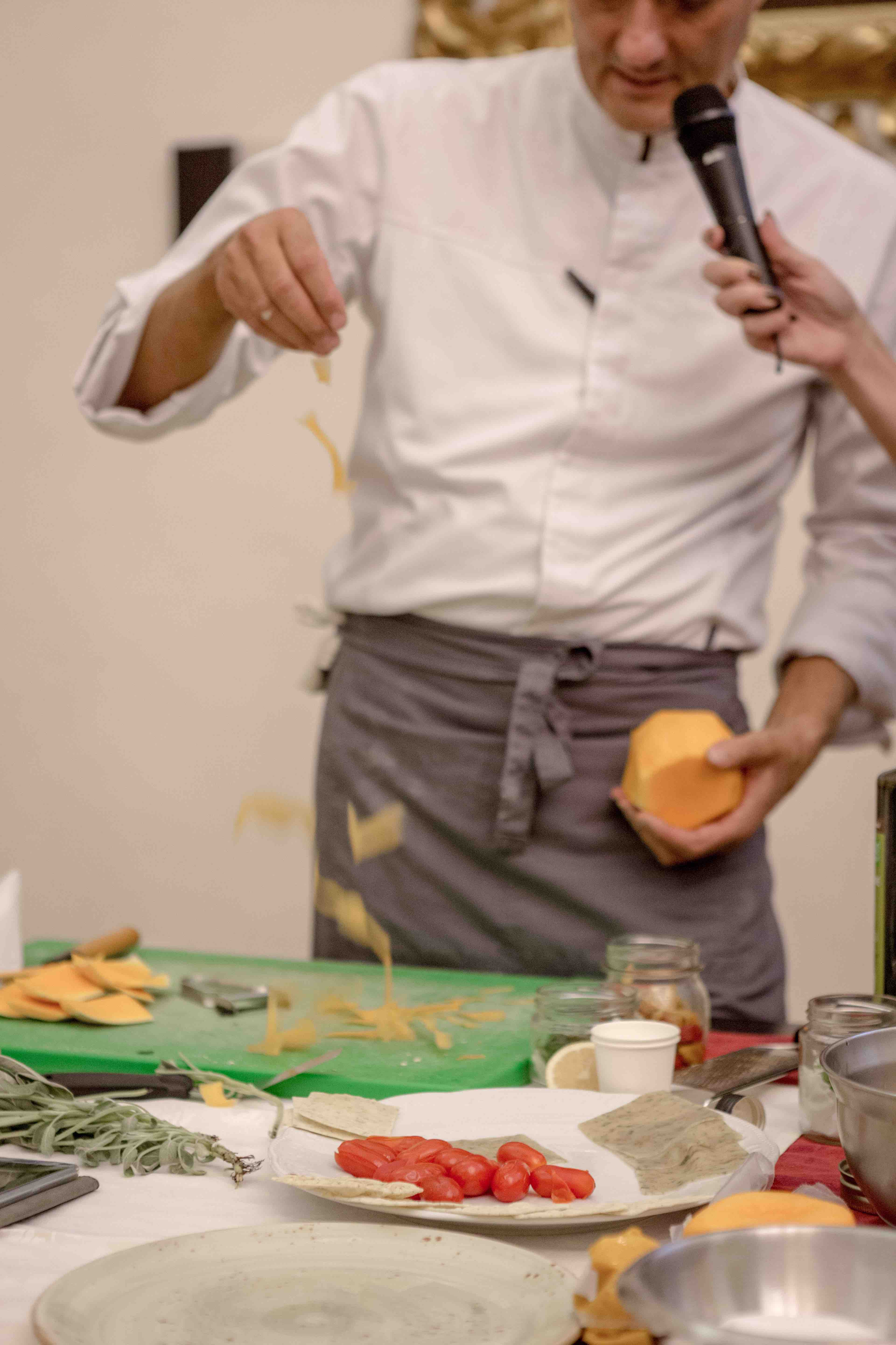A seguire lo Chef Simone Salvini si esibirà in un cooking show, con prodotti provenienti da agricoltura biodinamica, reinterpretando i piatti tipici del territorio: dando vita alla sua personale realizzazione della ‘pasta ripiena’, dove protagonisti saranno i prodotti biodinamici che la terra ci offre in questa stagione.