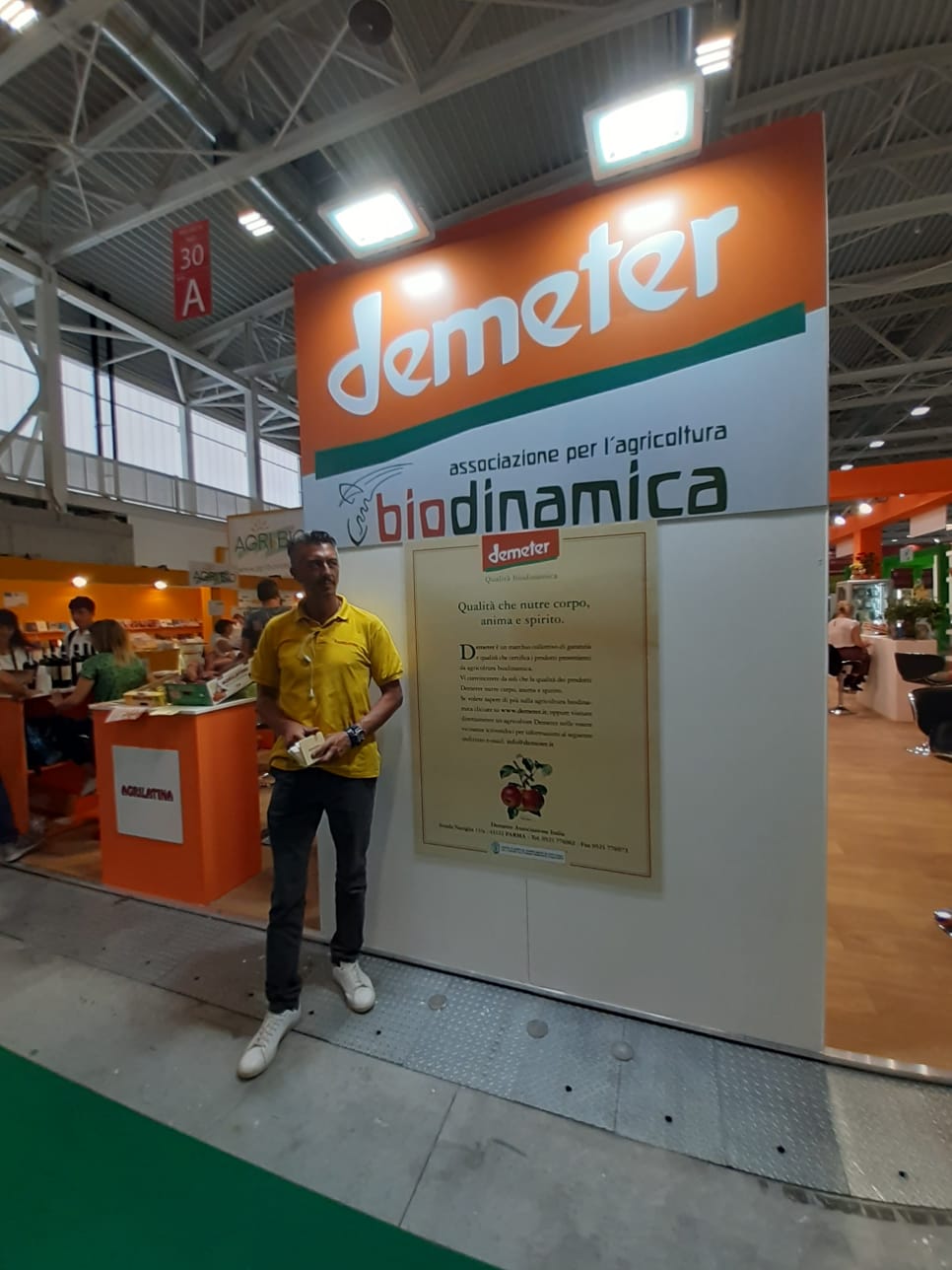 Dal 6 al 9 set presso lo stand Demeter (Padiglione 30, stand A58 e B57) saranno presenti le seguenti aziende biodinamiche: Consorzio Natura e Alimenta; Agricollibio Srl; Biolatina Soc. Coop. Agricola; Fattoria Cuore Verde di Tellini Emanuele; A.S.T.R.A. Bio Srl Unipersonale; Parlapiano Demetrio; Soc. Agr. 4 Principia Rerum Srl; Disanapianta Soc. Agr. Coop.; Acetificio Mengazzoli Snc; Agrilatina Soc Agr. Semplice; Casale S.S. di Giglioli e Rinaldi; Effegi Srl; Tenuta di Ghizzano Soc. Agr. S.S.; Terra di Briganti Soc. Agr. Sas di Filomena Casbarra; Zad Agrodynamics del dott. Zagnoli Enrico.